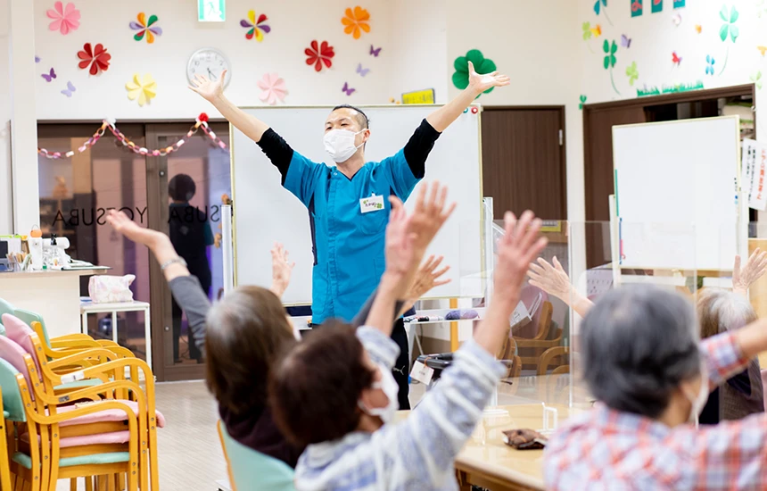- 機能訓練・静養室を完備しており柔道整復師がリハビリ、看護師が医療行為や体調管理を行っています。